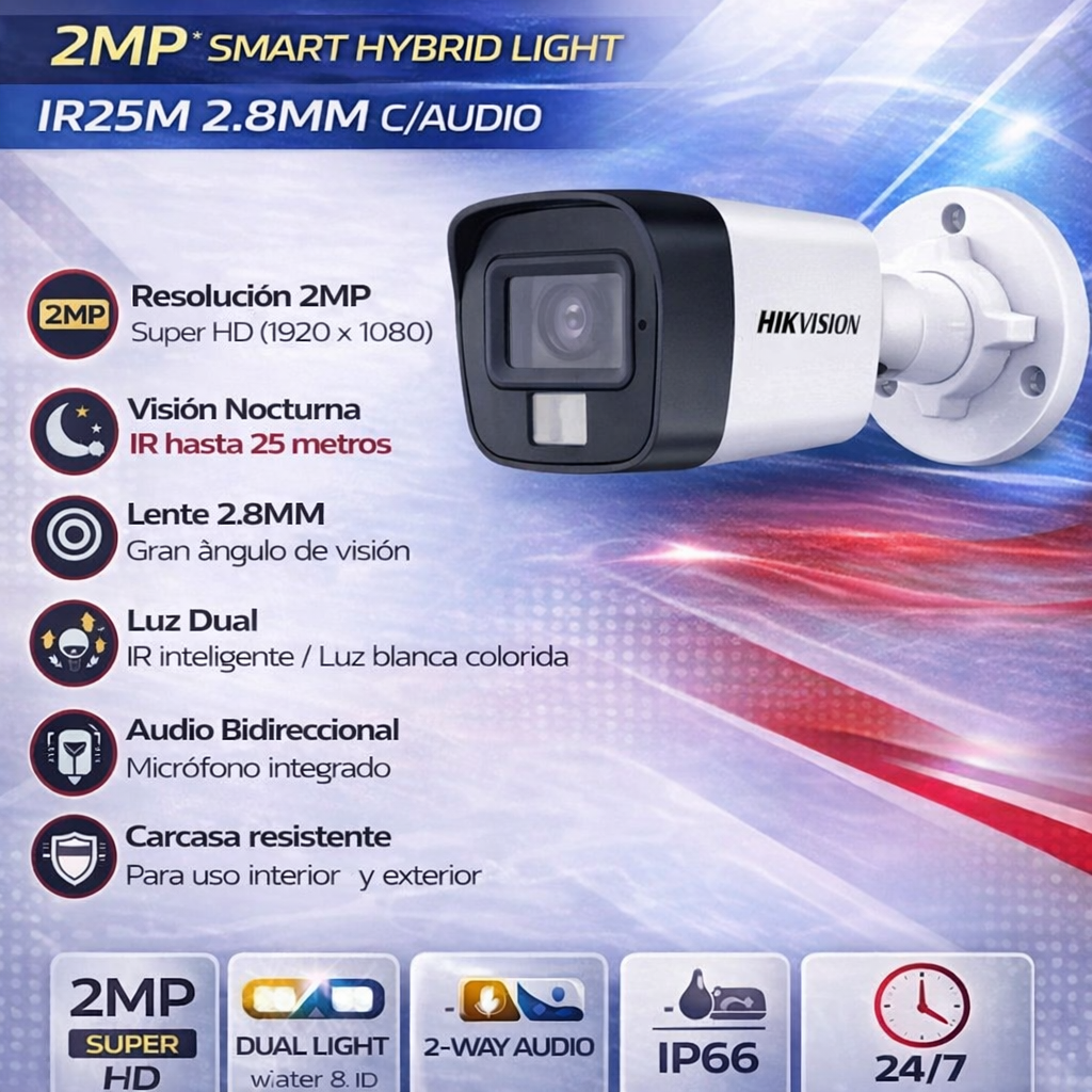 Tecnología Smart Hybrid Light: Iluminación dual inteligente (infrarrojo + luz blanca) para mejor visibilidad nocturna