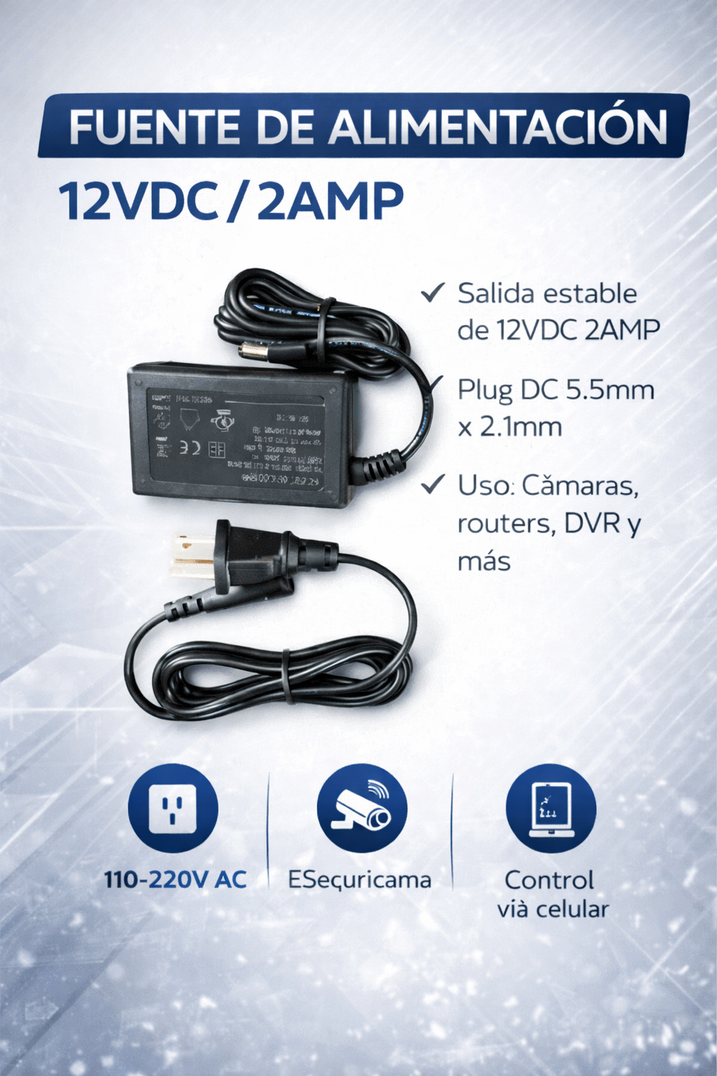 Compatibilidad: Cámaras de seguridad, DVR, routers, tiras LED y equipos electrónicos que funcionen con 12V