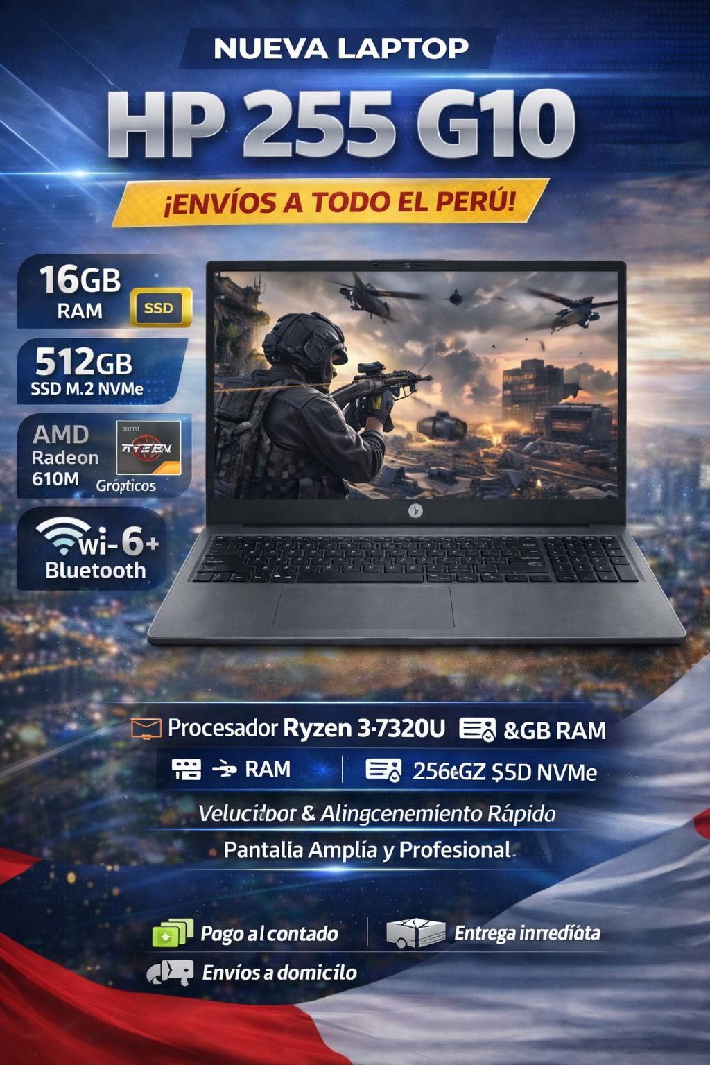 Sé el primero en valorar “Notebook HP 255 G10, 15.6″ LCD LED HD SVA, AMD Ryzen 5 7520U 2.8 / 4.3GHz, 16GB RAM”