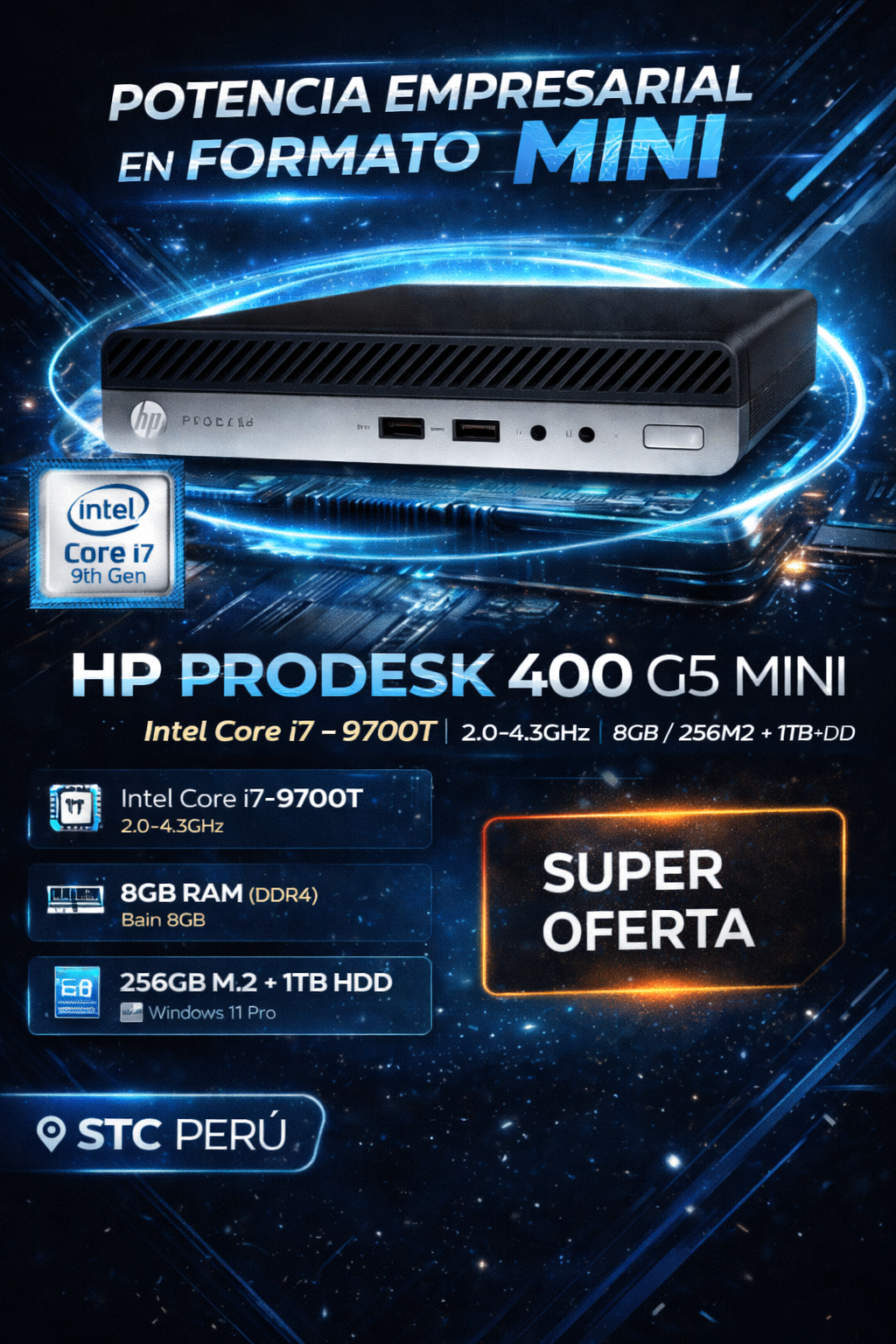 PC HP 400 G5 MINI I7-9700T 2.0-4.3GHZ / 8GB / 256M2 + 1TB HDD
