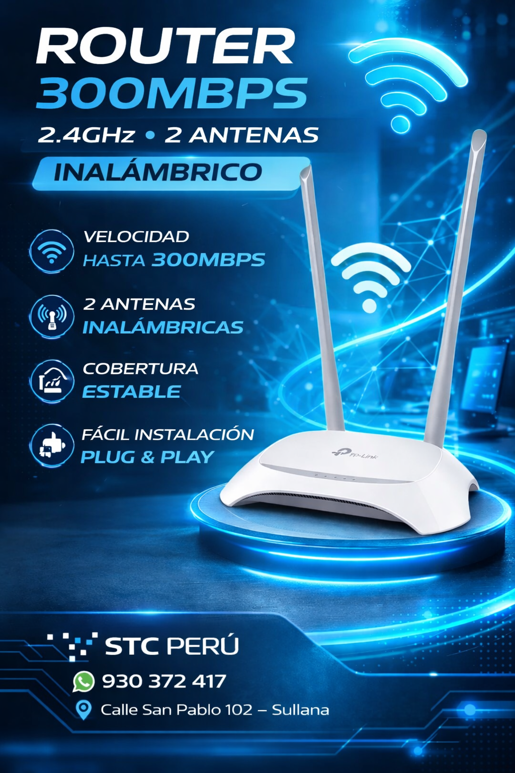 ROUTER 300MBPS 2.4GHZ 2 ANTENAS INALAMBRICO